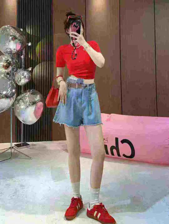 捡漏70条女高腰时尚百搭水洗浅色设计感休闲皮带松紧腰牛仔短裤,独立包装,松紧腰,码数S-XL,(货号0903#6)