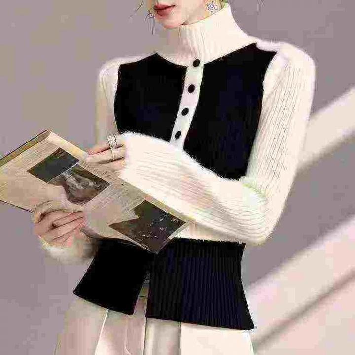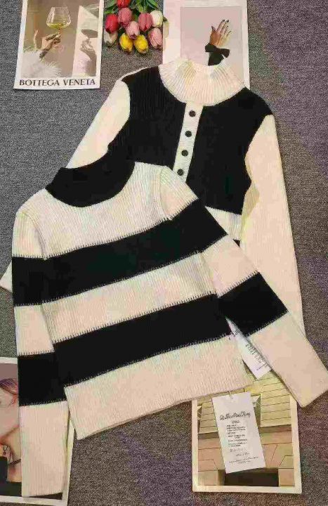 慵懒风黑白撞色半高领轻糯针织毛衣,[爱心]250件左右,两个款,黑色高领无扣为主,均码,穿80-130斤,万佳档口货,原包装️无瑕疵,[666]实体店品质,分货加一