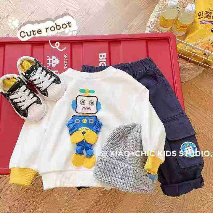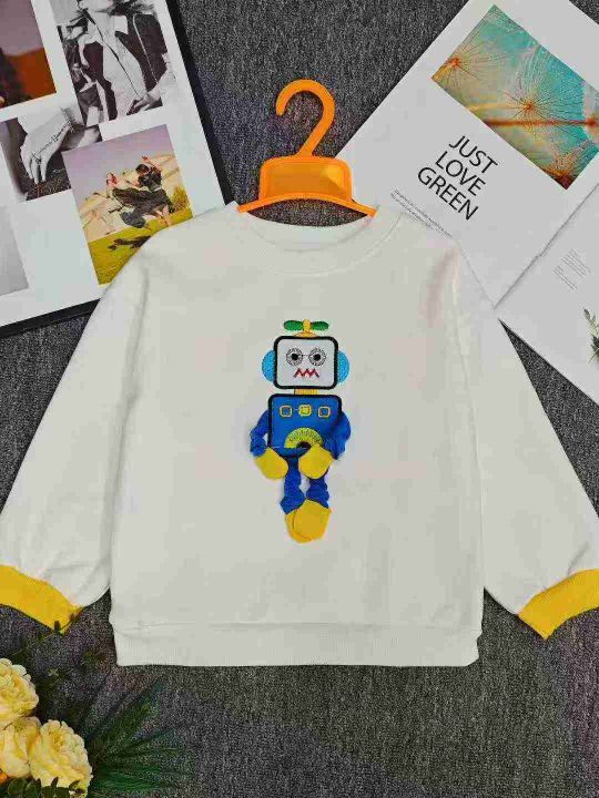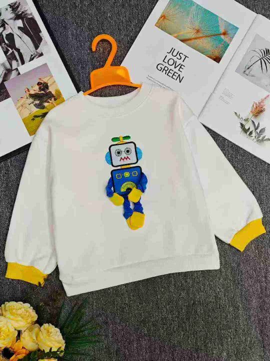 天猫仓回收420件机器人刺绣纯棉圆领加婴儿绒儿童卫衣,80-130码数。面料柔软舒适,质量款式超级好,全部独立包装。分货➕0.5