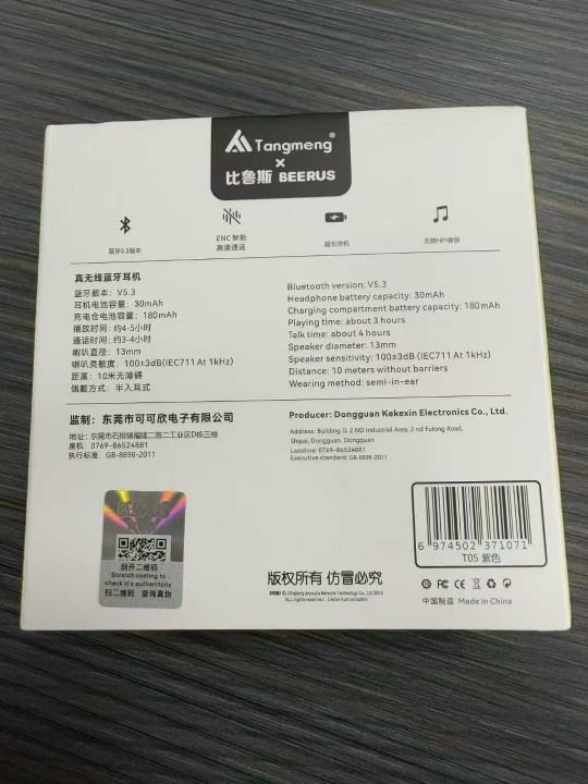 正品比鲁斯无线蓝牙耳机,带防伪码, 6000pcs,1件100pcs