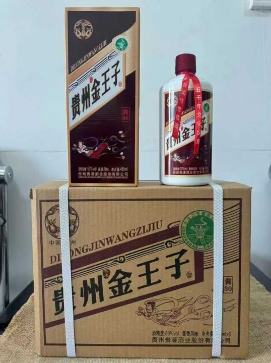 30露头一箱,贵州金王子酒53度,酱香型,一箱6瓶,...