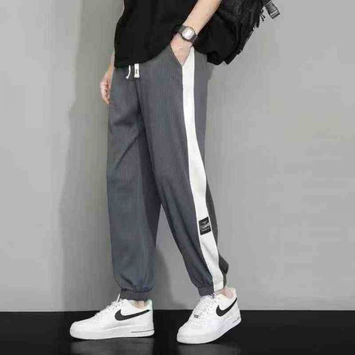 条纹裤子男夏季薄款冰丝运动卫裤男宽松束脚男生休闲裤,整款3色,独立包装,货品干净,M-4XL码,1100件,6.8清,分货加1