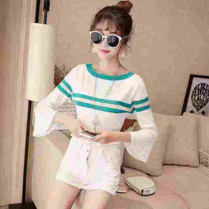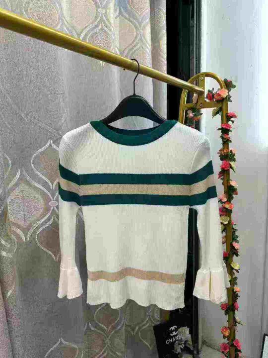 全清5.9 春秋新款女装时尚条纹冰丝针织衫,修身百搭喇叭袖,全部独立包装,一共150件