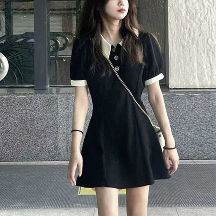 424件,polo气质学院风连衣裙短袖法式夏季新款百搭小个子收腰显瘦小黑裙,...