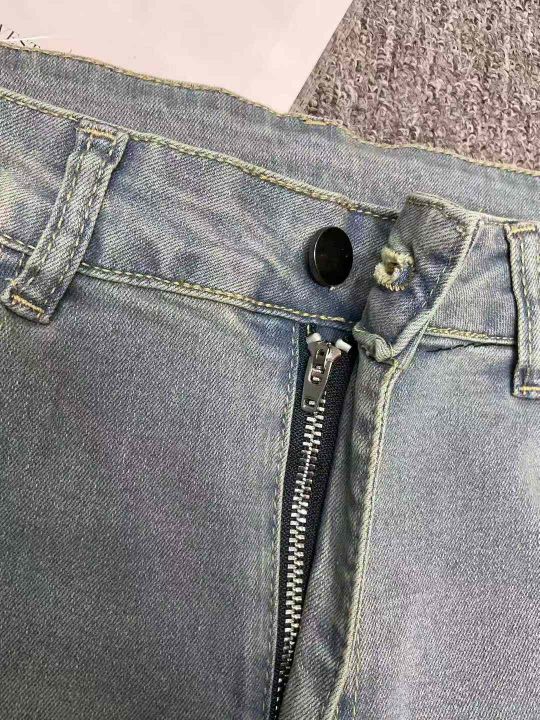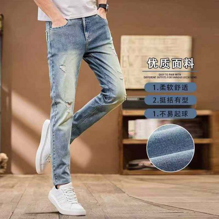秋季新款男士高弹力复古蓝破洞设计款牛仔裤,独立包装...