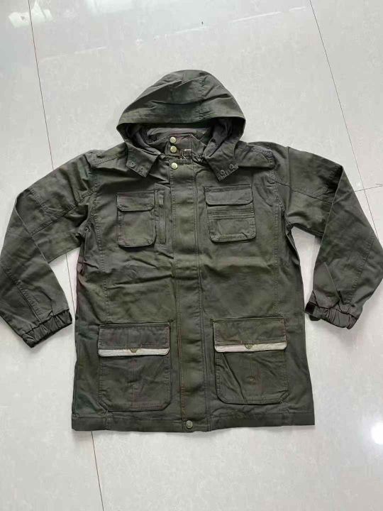 复古宽松军绿色工装翻领长袖牛仔外套,单款单色,独立包装,数量165,XS-L...