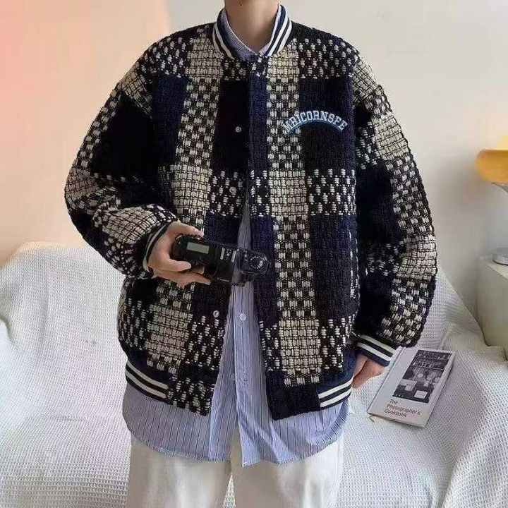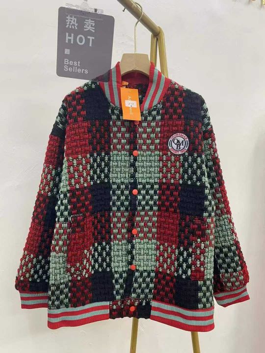 拼色编织格子棒球服264件,清20.8,小香风宽松版情侣...
