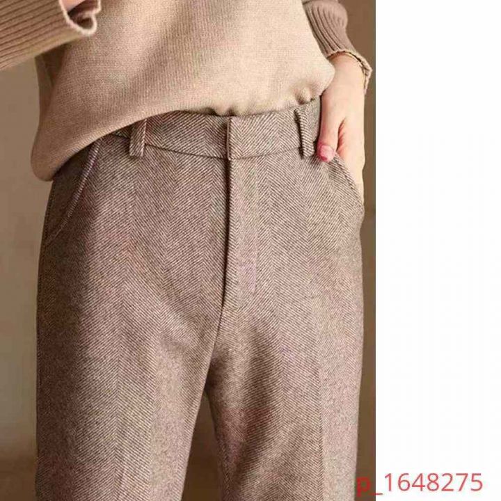女裤2025秋冬棕咖色深灰色人字纹毛呢西裤女九分烟管裤,独立包装,图色图款,S -XL码,888件左右,清5.8 _@_@
