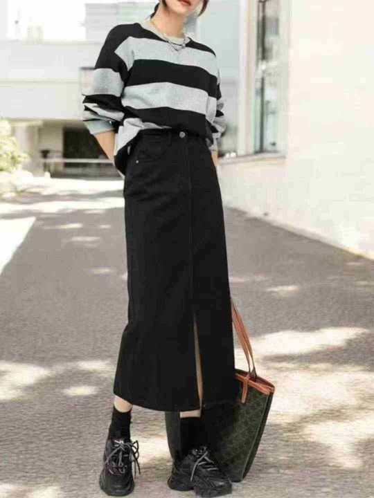 靓妹黑色牛仔半身裙女新款直筒开叉长裙子145件,独立包装带吊牌,尺码S~5XL...
