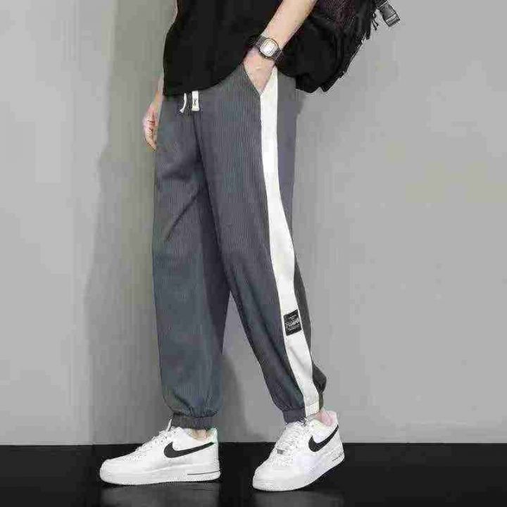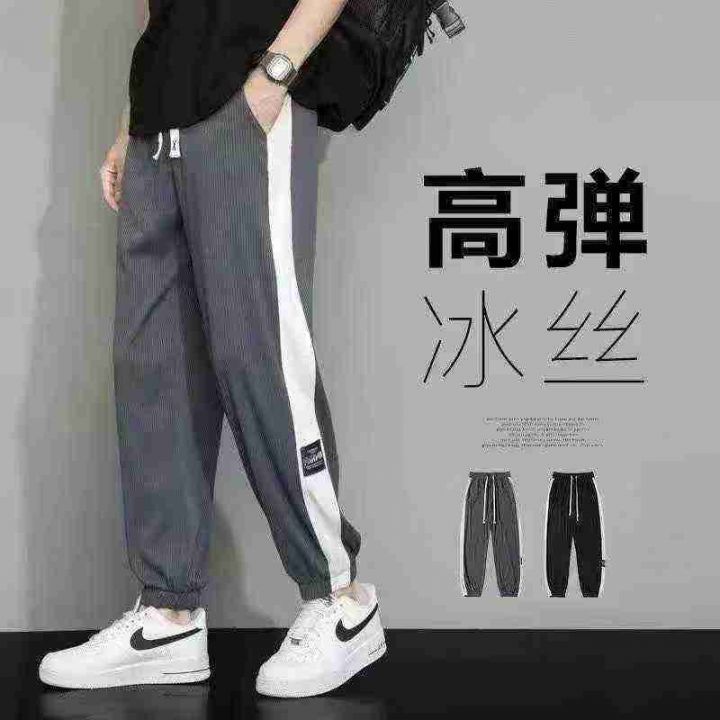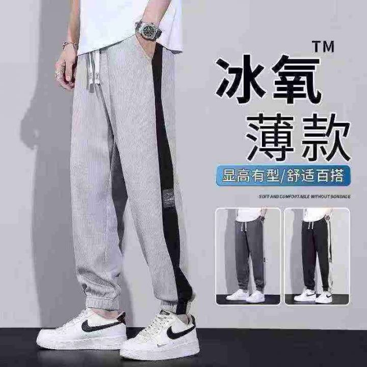 条纹裤子男夏季薄款冰丝运动卫裤男宽松束脚男生休闲裤,整款3色,独立包装,货品干净,M-4XL码,1100件,6.8清,分货加1