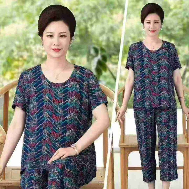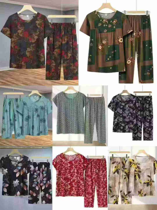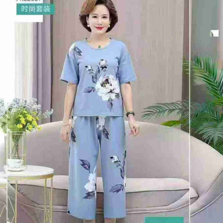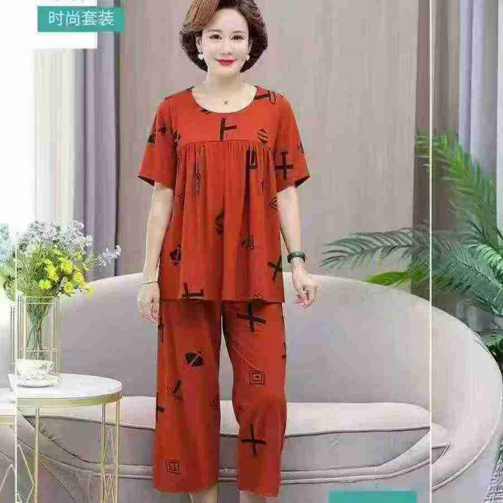 妈妈款夏装套装短袖t恤两件套宽松上衣,数量:2450套,码数:1-2-3-4-5-6-7(S-M-L-XL-2XL-3XL-4XL),有独立包装,5.9元清