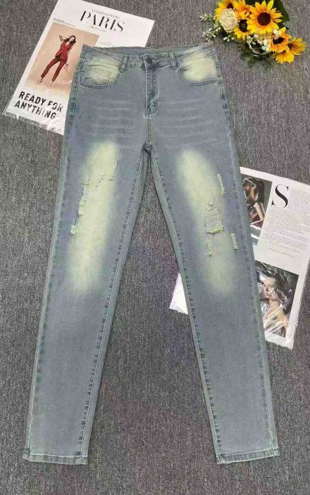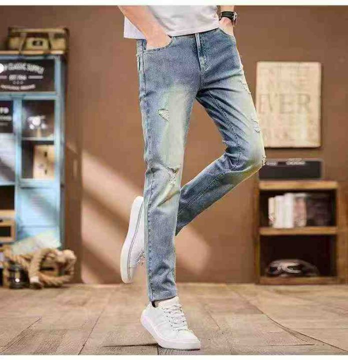 秋季新款男士高弹力复古蓝破洞设计款牛仔裤,独立包装...