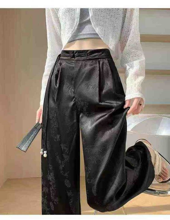 上清全清:16.8一件新中式国风盘扣高腰垂感阔腿女裤,...