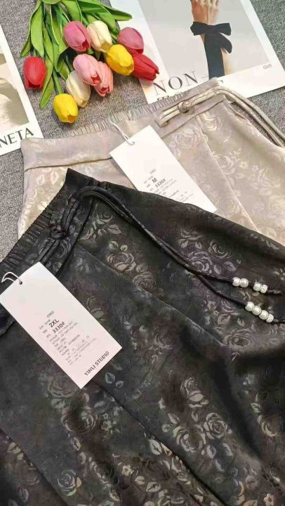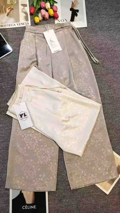 新中式国风盘扣高腰垂感阔腿女裤,[爱心]250件左右,杏色灰色为主,码数S-2XL,穿80斤-140斤,万佳档口货,原包装️无瑕疵,实体店品质,分货加一