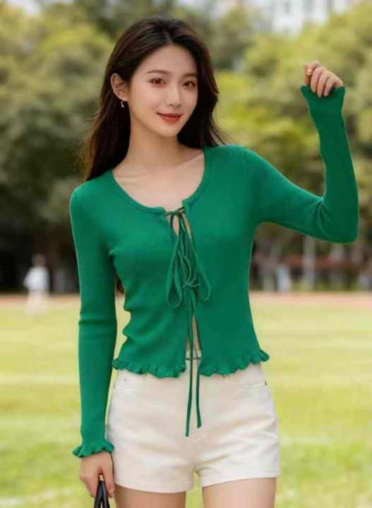 秋季新款韩系百搭宽松绑带花边针织毛衣开衫,独立包装,均码面料柔软舒适弹力大,280件,全清5.9元超低价秒杀!