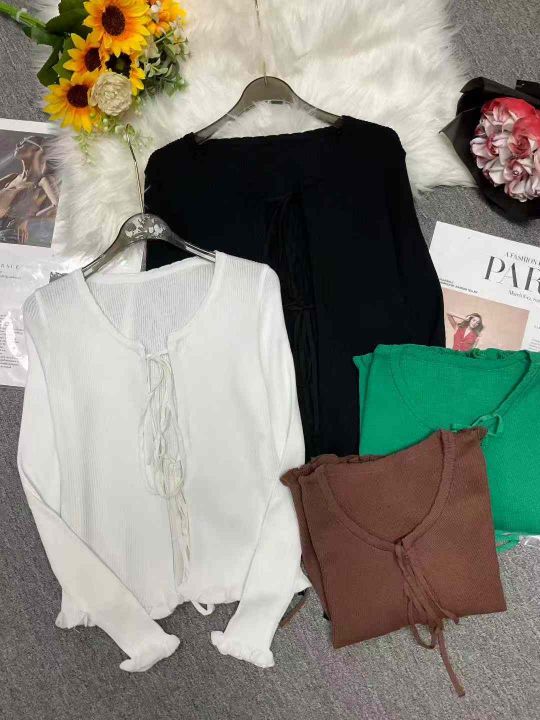 秋季新款韩系百搭宽松绑带花边针织毛衣开衫,独立包装...