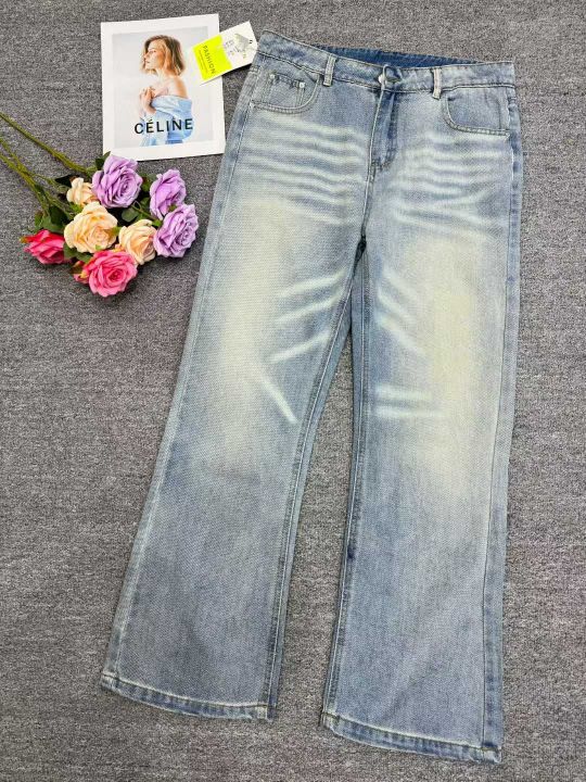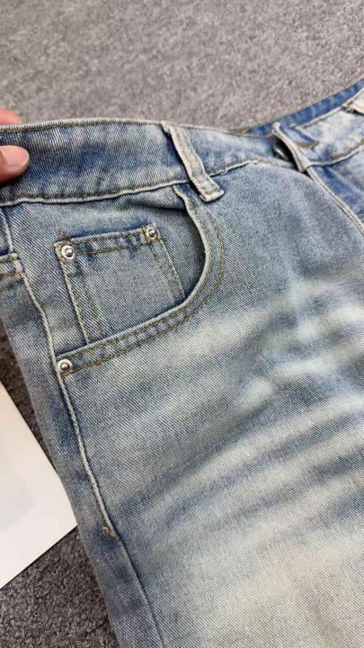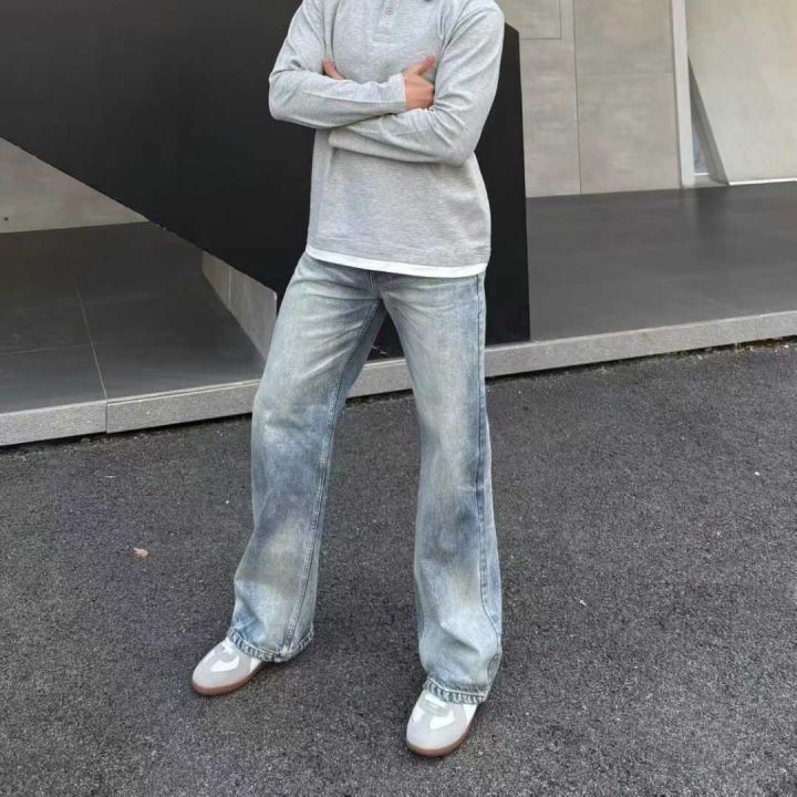 2025水洗冰蓝色磨白猫须直筒微喇牛仔裤男复古百搭宽松裤子情侣,独立包装,码数M-4XL,数量112条,全清11.8元