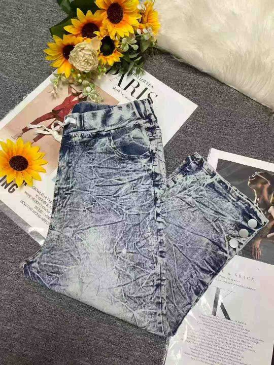 男女同款复古蓝高弹力洗水棉松紧腰牛仔中裤,独立包装,码数M--2XL码,800件,全清5.8元超低价秒杀!分货加一!