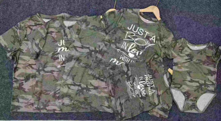 1.8元,夏季棉质迷彩短袖T恤,共730件,码数大童至婴童(L-2XL110件,2T-14T510件,3M-24M110件),独立包装,全清1.8元,分货+0.5