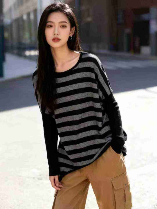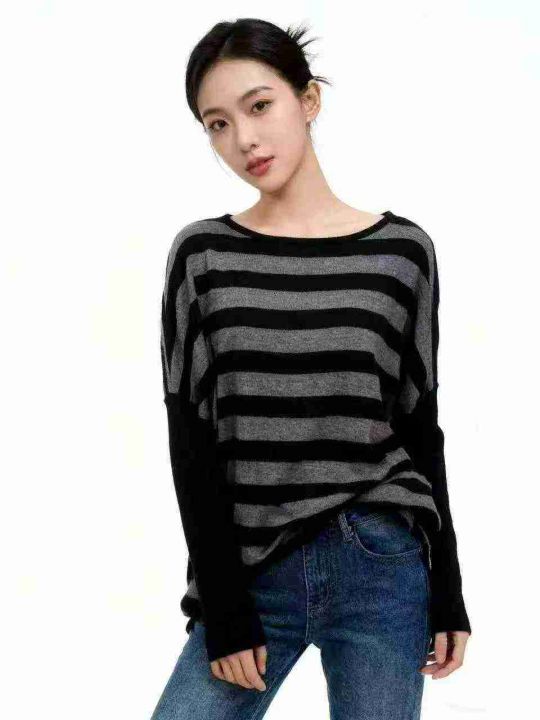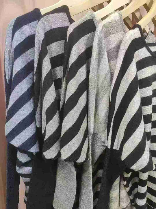 韩版条纹控慵懒微蝙蝠袖针织毛衣,独立包装,均码,224件,清7.5分➕1