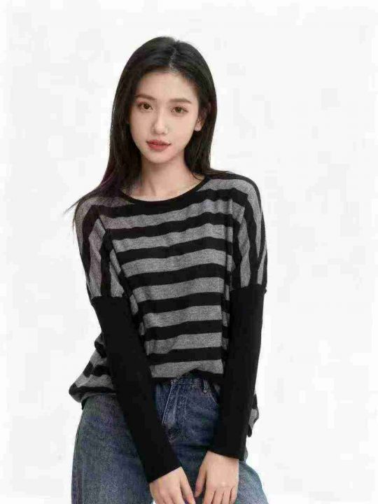 韩版条纹控慵懒微蝙蝠袖针织毛衣,独立包装,均码,22...