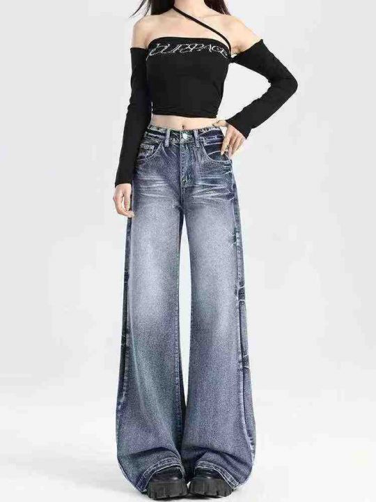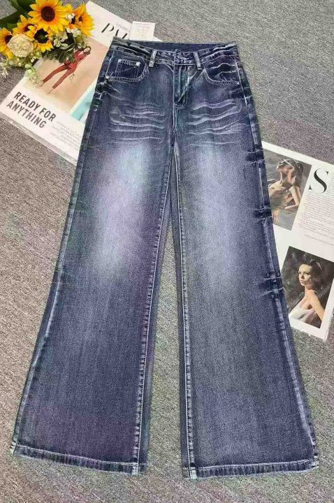 秋季新款女装洗水棉网红爆款大阔腿牛仔长裤,独立包装...