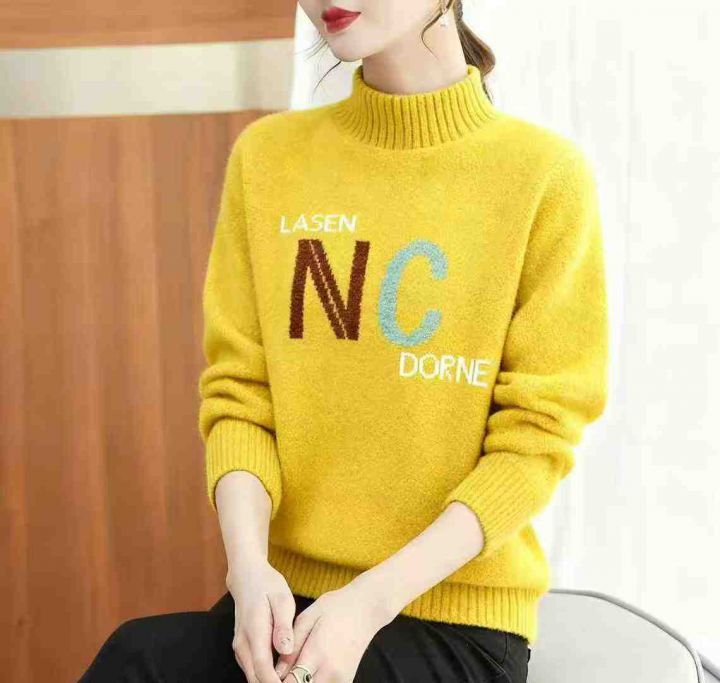 秋冬新款高品质雪尼尔+水貂绒半高领加厚洋气百搭提花...