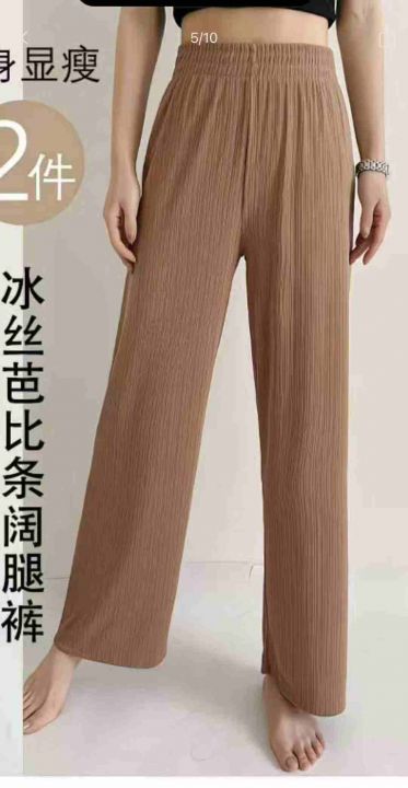 6.8清285件胖mm垂感休闲冰丝阔腿裤子女夏季薄款防蚊抖抖凉凉长裤 松紧腰头码数S--XL 独立包装
