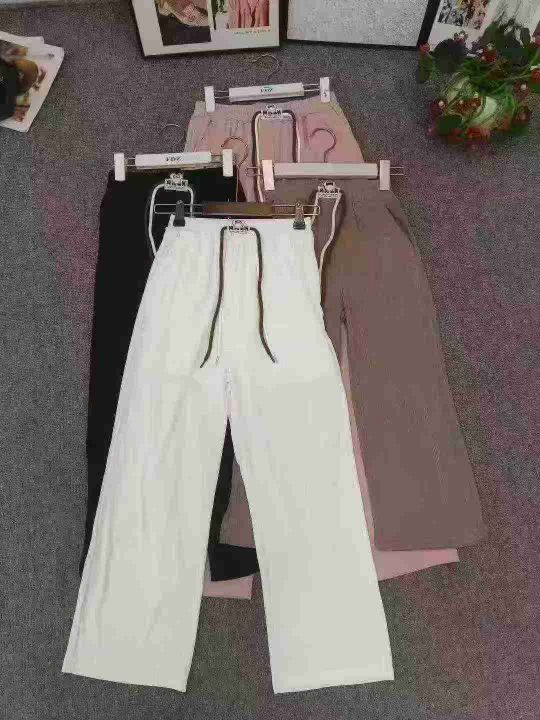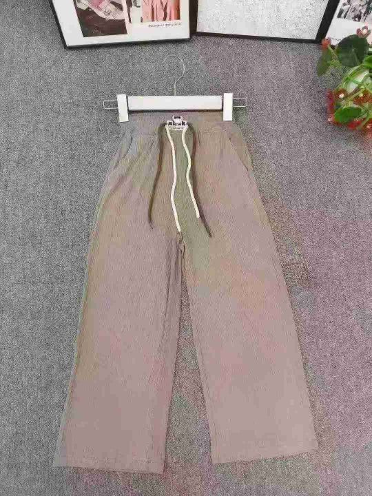 品牌洋气中大童时髦运动休闲直筒冰丝裤,数量1000件左右,尺码110--160,整款四个色(白色居多) 面料冰凉垂感足,白色带内衬防走光,内里包边,拉链包装带吊牌,全清9.8分货➕1