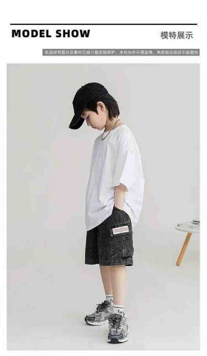 7576件\'夏季新款中大童韩版纯色凉感半袖体恤儿童上衣,20件一包装,黑白两...