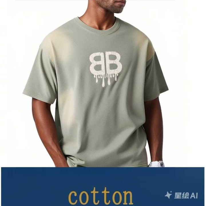 外贸新款复古纯棉双纱280克潮牌印花短袖情侣款宽松休闲圆领T恤,独立包装带吊牌,码数2XL-7XL,460件左右,全清13.8分货➕1