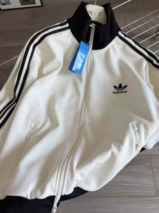 ADIDAS 阿迪达斯三叶草男女装2025秋款华夫格复古百搭休闲立领外套JW0109 黑色 乳白 灰色1350件 配清 100起配!
