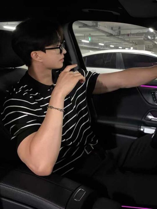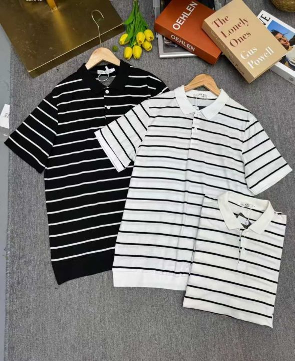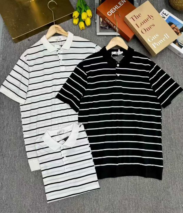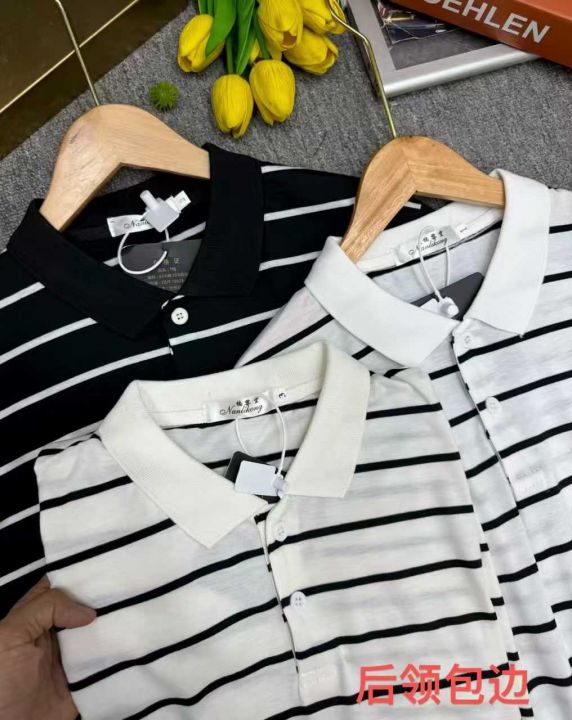 日系气质条纹短袖男款Polo衫夏季透气宽松棉翻领T恤衫,独立包装,码数M-3XL(1-5),数量305件,分货加1,货号1015#34