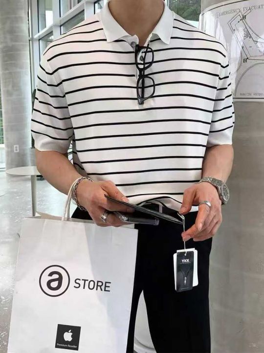 全清价6.9元日系气质条纹短袖男款Polo衫夏季透气宽松...