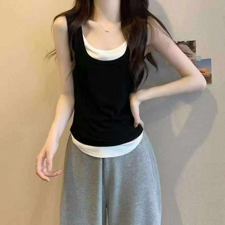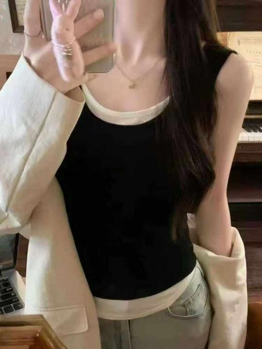 港风假两件背心设计感小众辣妹打底内搭吊带外穿潮流无...