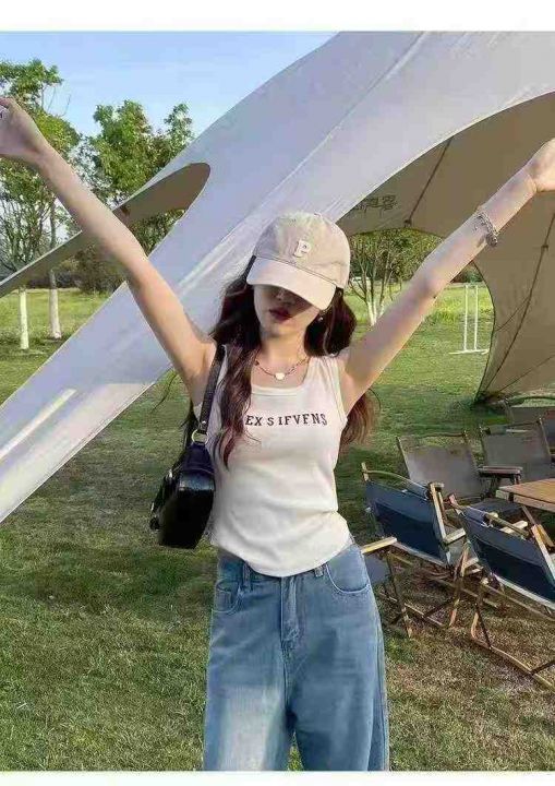 夏季新款高弹力辣妹性感纯欲风字母印花冰丝吊带背心,...