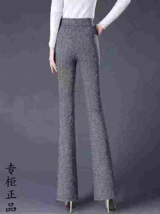 全清6.9 秋冬加绒女装条纹长裤,高腰显瘦喇叭裤,设...