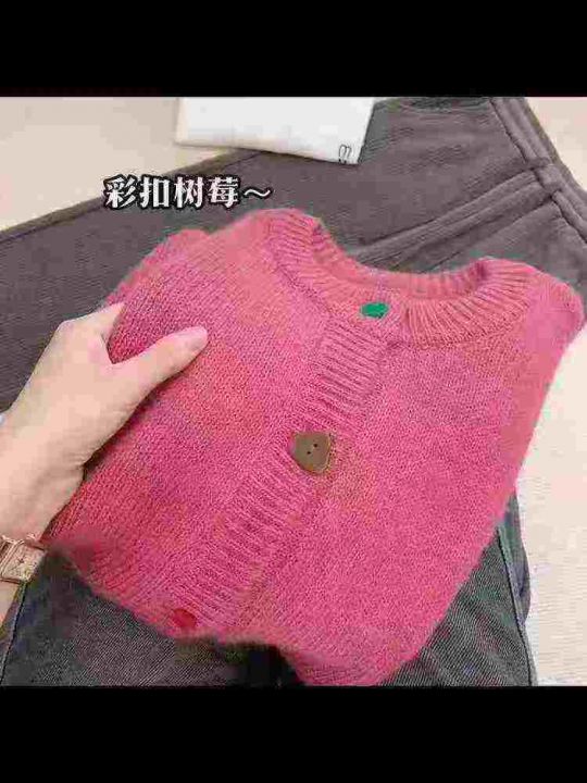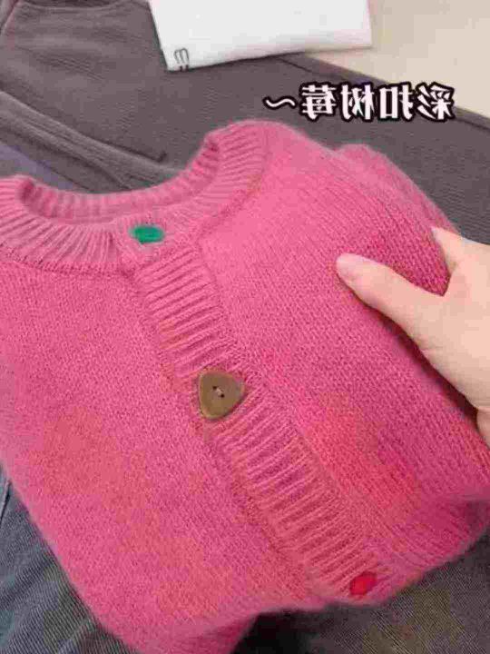 全清10.8,树莓粉色针织开衫女2025早秋装新款减龄彩扣圆领加厚毛衣,单色独立包装吊牌,72件均码,不分货