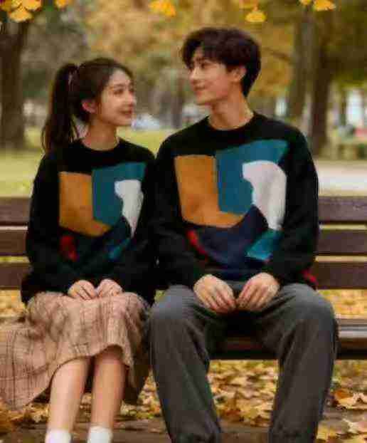秋冬新款宽松慵懒风百搭卡通提花包芯纱加厚圆领套头毛衣,独立包装,均码面...