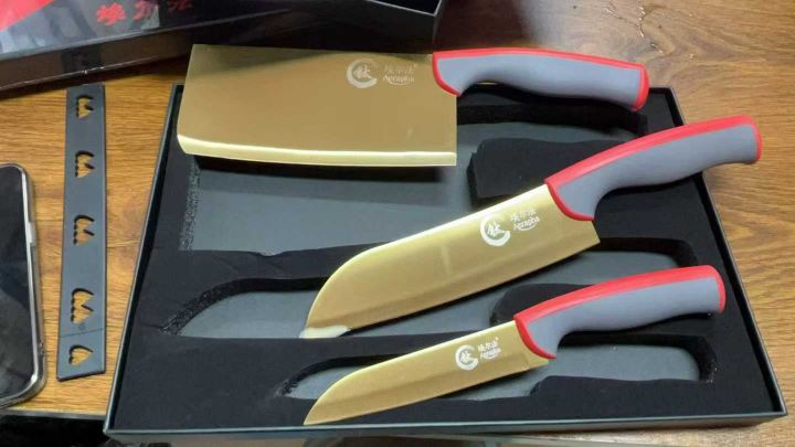 #礼盒包装厨房钛刀三件套舒适刀柄 久切不累...
