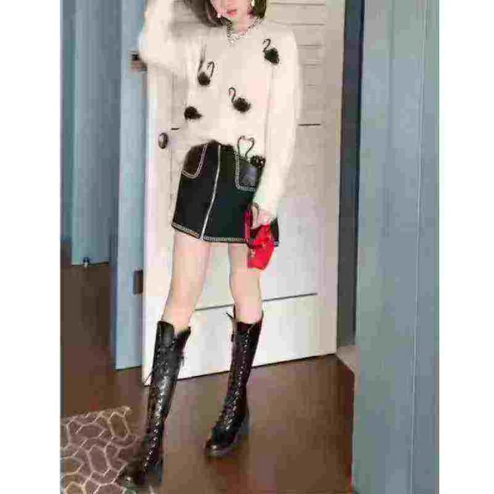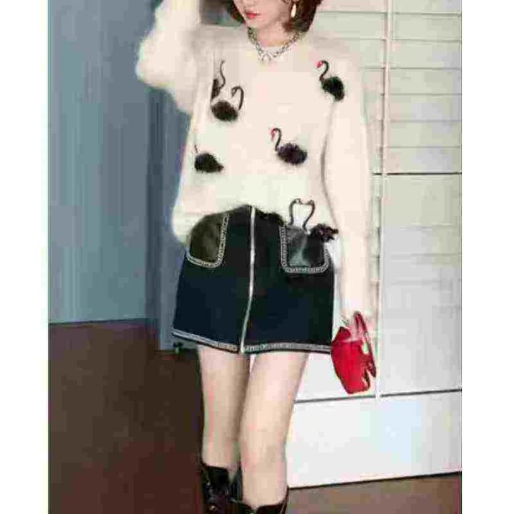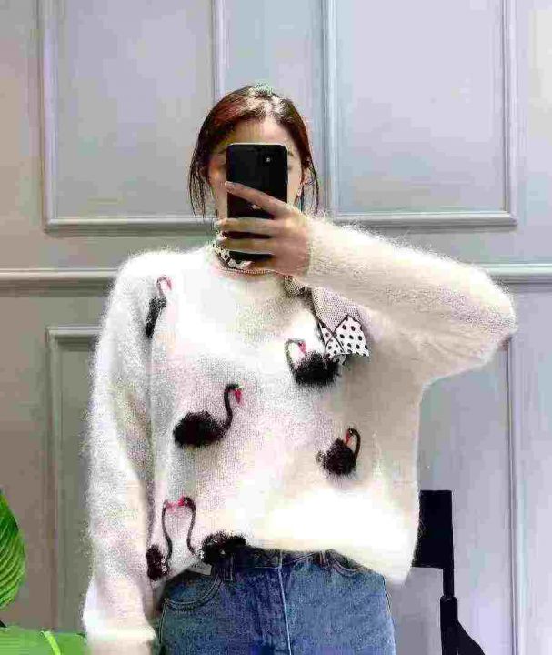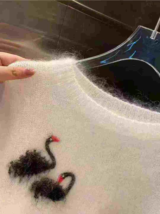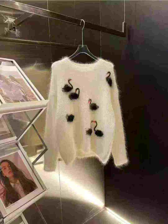 全清12.8,欧洲镶钻提花天鹅马海毛减龄漂亮毛衣2025新款爆款设计感针织衫,全部独立包装吊牌,均码69件,不分货