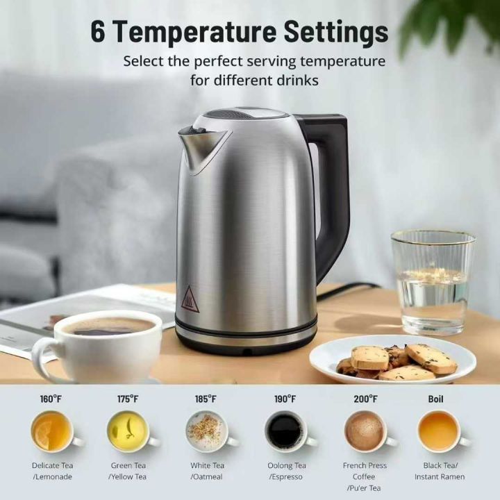 Paris Rhône电热水壶,触摸控制,6种温度设置,1.7L容量,Strix温控器,自动关闭断电功能,防干燥保护,保温功能,LED指示灯,可视水窗