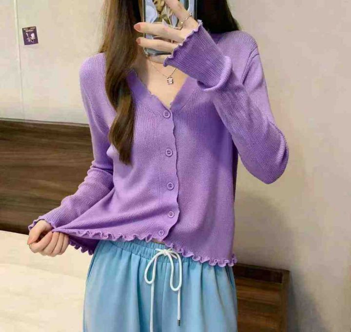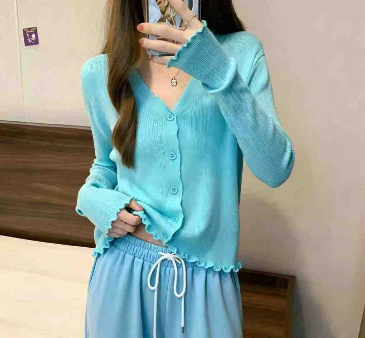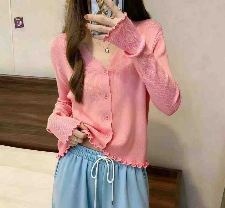 秋季新款木耳边纯色宽松百搭V领针织开衫,独立包装,均码面料软糯舒适弹力大,450件左右,全清7.9元超低价秒杀!分货加一!