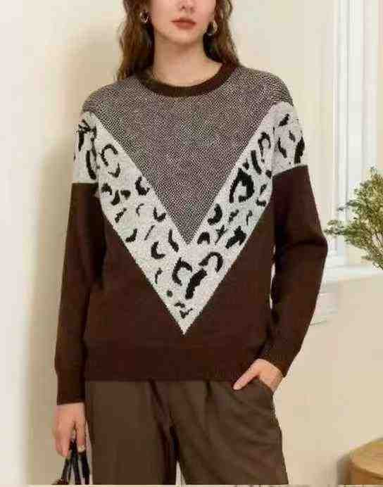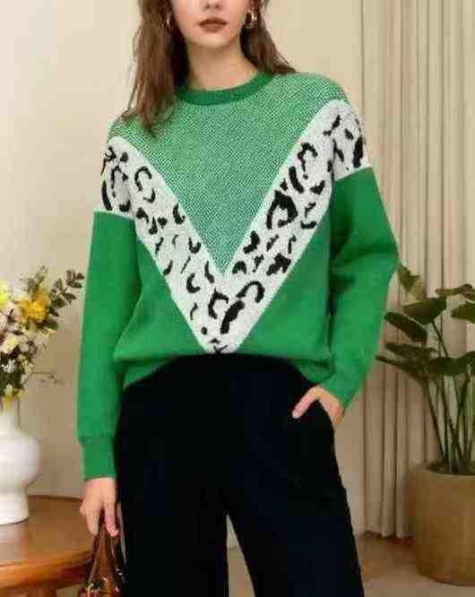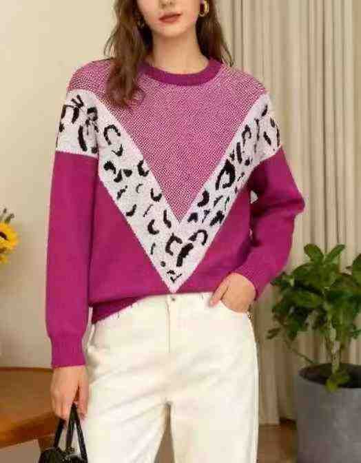 秋冬新款撞色宽松慵懒风圆领北极绒提花套头毛衣,独立...