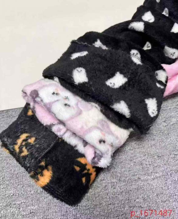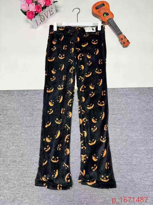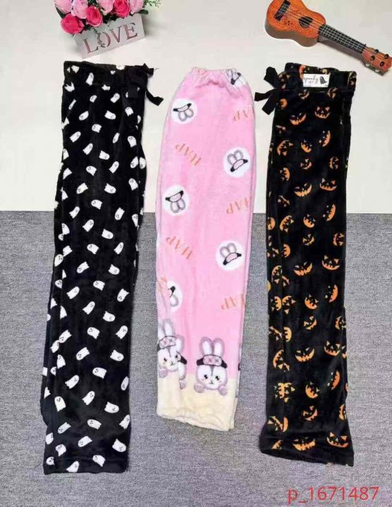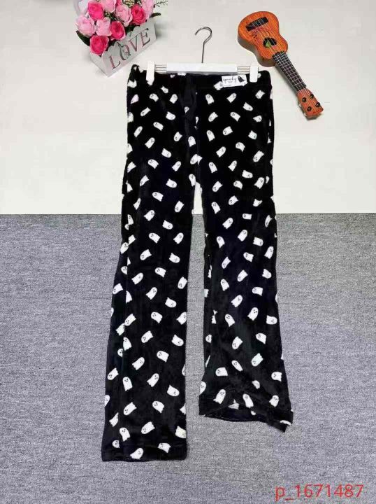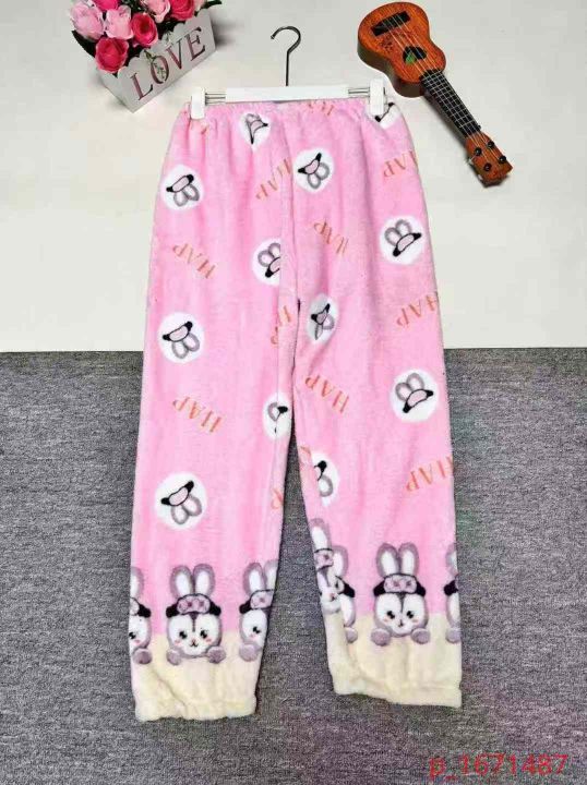 575条秋冬宽松大码法兰绒加绒加厚女睡裤可爱休闲卡通...