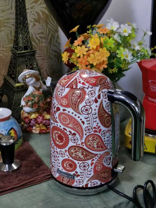 现代融合复古,生活与艺术的结合,经典腰果花元素,复刻在电热水壶上,桌面上的风景线[机智]