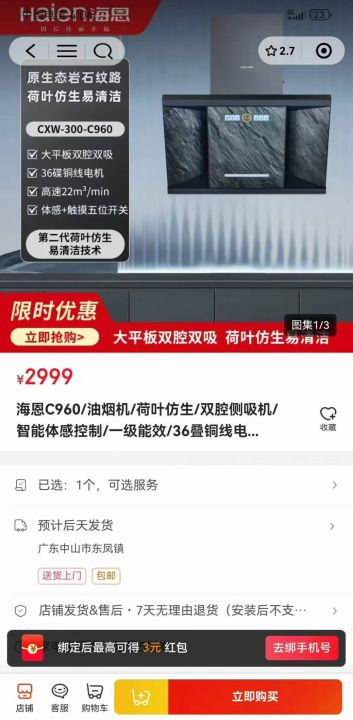 只有90台海恩品牌烟机