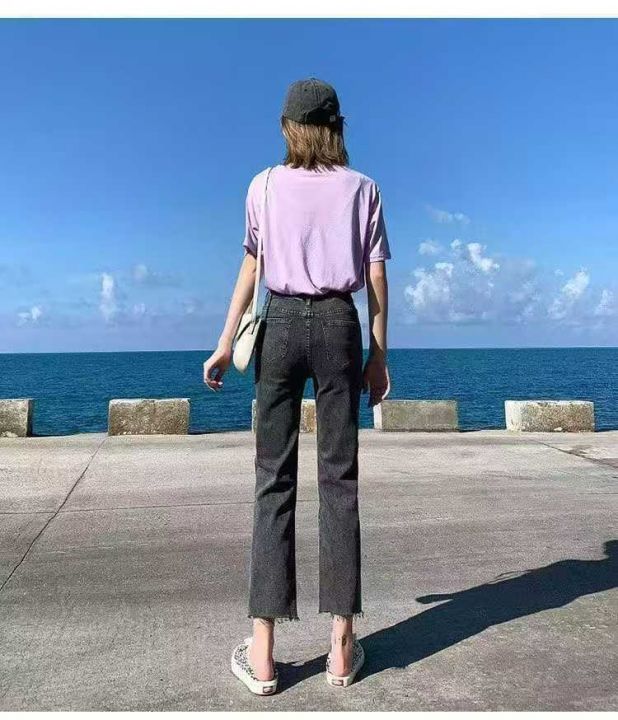 秋季新款高弹力洗水棉网红爆款毛边牛仔烟管裤,独立包...
