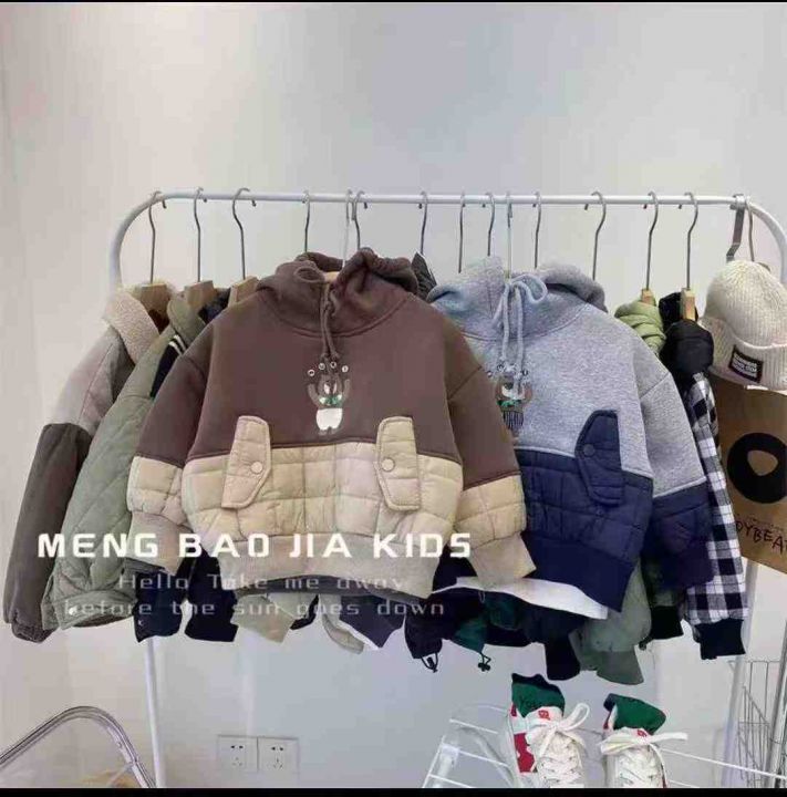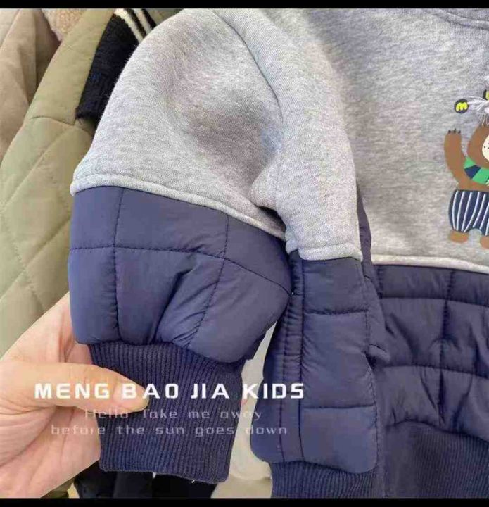 冬季新款 儿童绗棉拼接一体绒连帽卫衣帽衫男童女童韩版上衣潮,数量285件,码数80-110,独立包装,全清8.8元