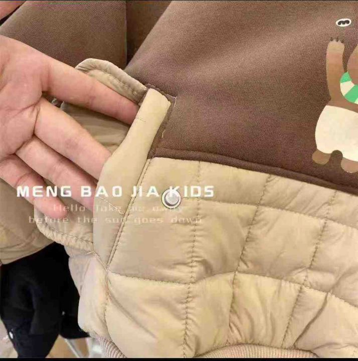 冬季新款 儿童绗棉拼接一体绒连帽卫衣帽衫男童女童韩...
